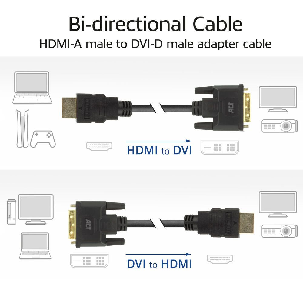 ACT HDMI-A male to DVI-D male adapter cable 1m Black