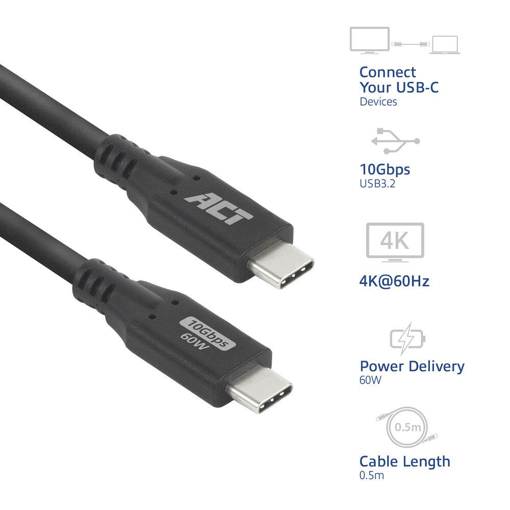 USB 3.2 | 10Gbps | USB Type-C® | 60W | 4K@60Hz | 50 cmUSB 3.2 Gen2 kábel USB-C eszközök csatlakoztatásához és töltéséhezAdatátviteli sebesség akár 10 GbpsTeljesítményellátás: (SPR) 20V @ 3A = 60W-igDisplayPort Alternate Mode 1.4 támogatás maximum 4K@60Hz videófelbontássalCsatlakozók: csatlakozó: USB-C hím - USB-C hímKábel hossza: 0,5 méterAz AC7440 USB 3.2 10Gbps USB-C kábellel csatlakoztathatja USB-C eszközeit. A kábel akár 10 Gbps maximális adatátviteli sebességet is elérhet, és 60 W teljesítményt képes kezelni. Az AC7440 támogatja a DisplayPort Alternate Mode 1.4-et, maximálisan 4K@60Hz-es felbontással, és visszafelé kompatibilis az USB 3.1-gyel és az USB 2.0-val.