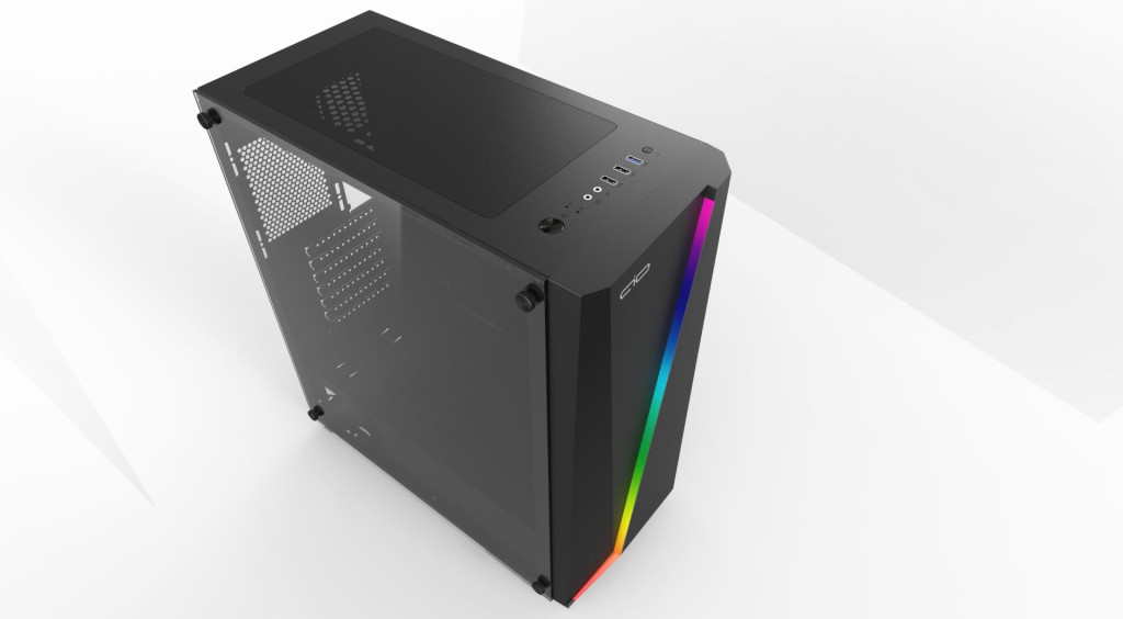 ATX, Black, 2x3,5", 3x2,5", 2xUSB2.0, 1xUSB3.0, Audio, Táp nélkül, 430x200x485mm , Tempered glass window