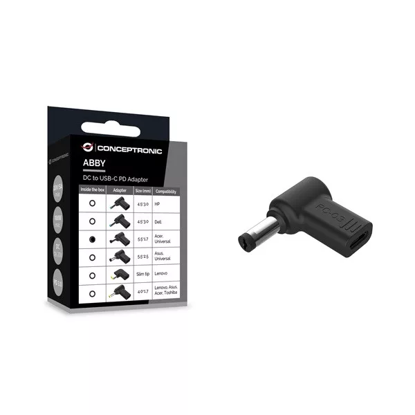 This DC to USB-C adapter is designed for use with a USB-C PD charger, enabling connection to an Acer Laptop or other devices compatible with a 5.5x1.7mm DC connector.