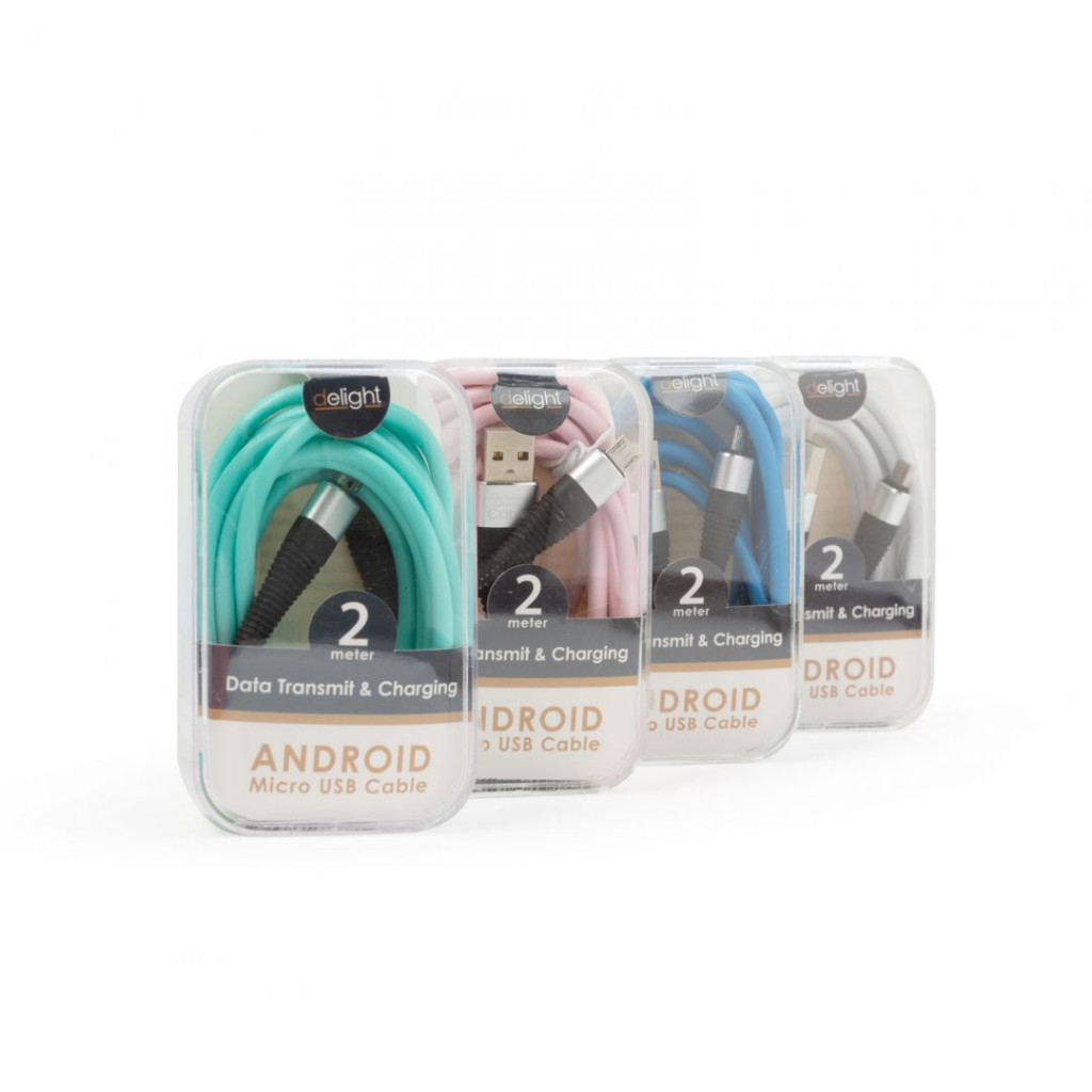 Delight Android adatkábel szilikon bevonat 2m (vegyes szín)