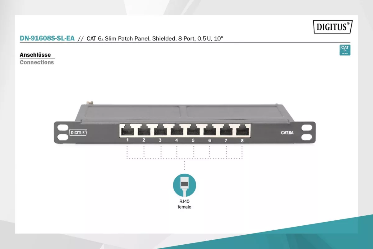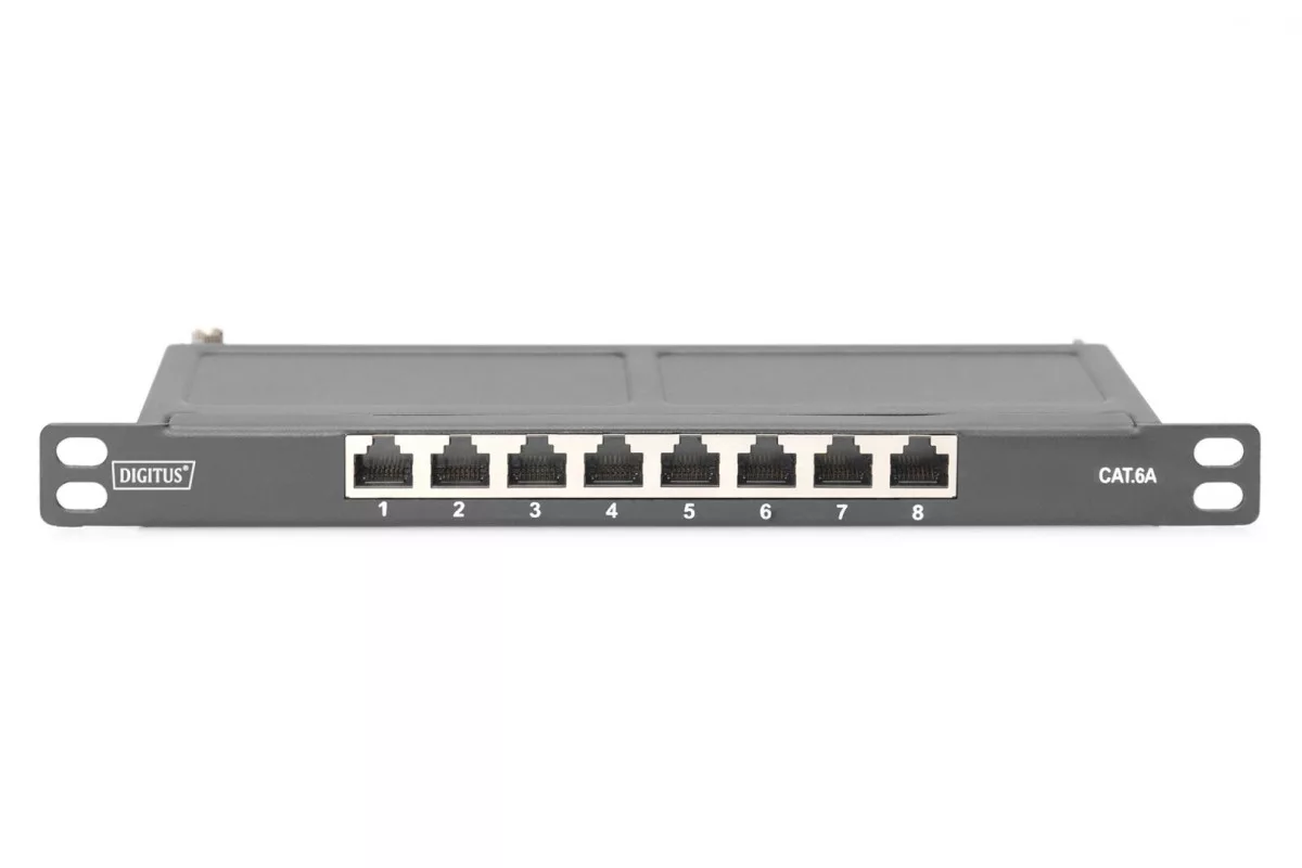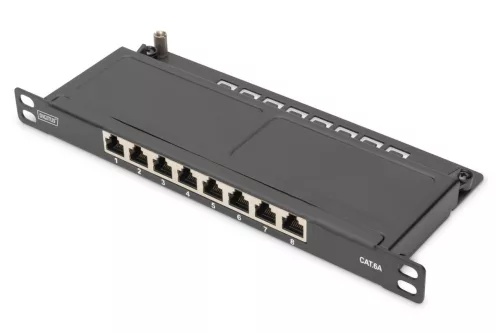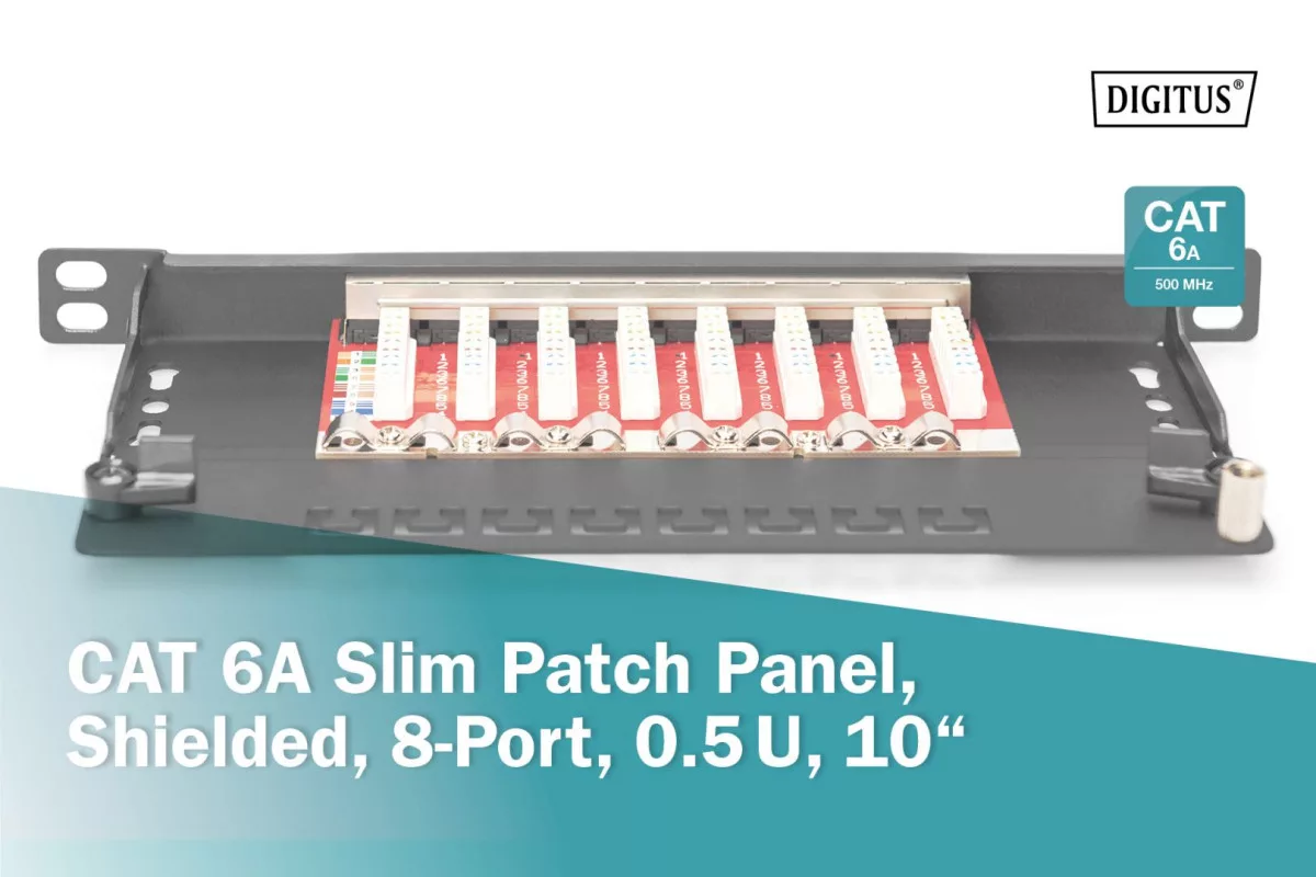Keret kapacitása:0,5U, Portok száma:8db, Szerelt csatlakozók:Nincs, CAT6a, Black