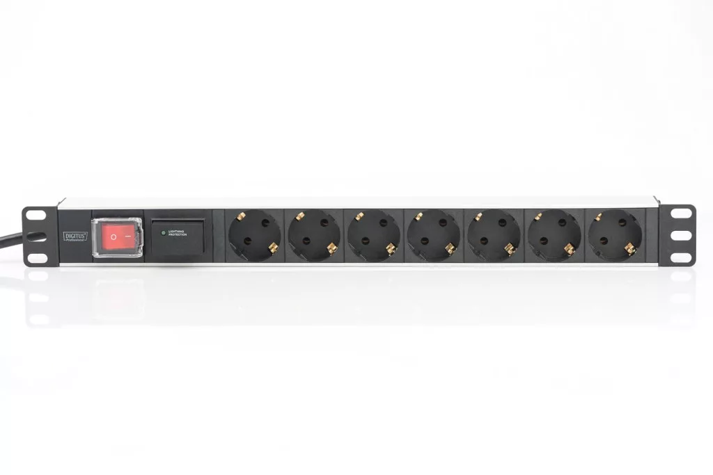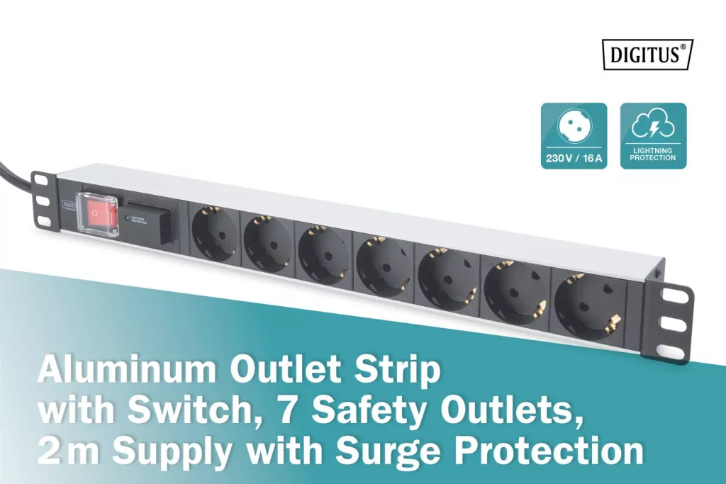 Digitus Aluminum outlet strip with switch 7 safety outlets 2m supply with surge protection