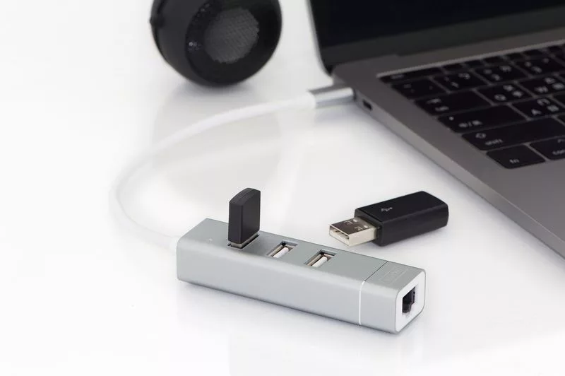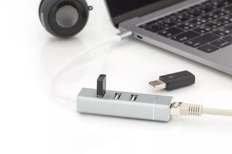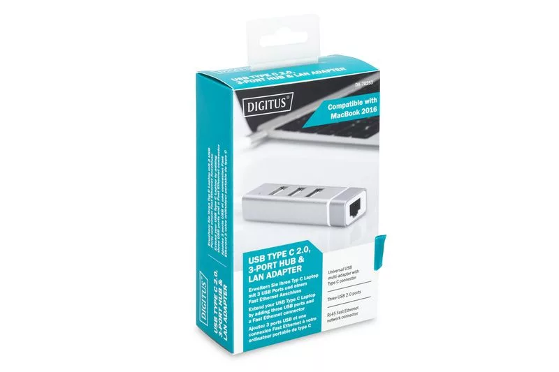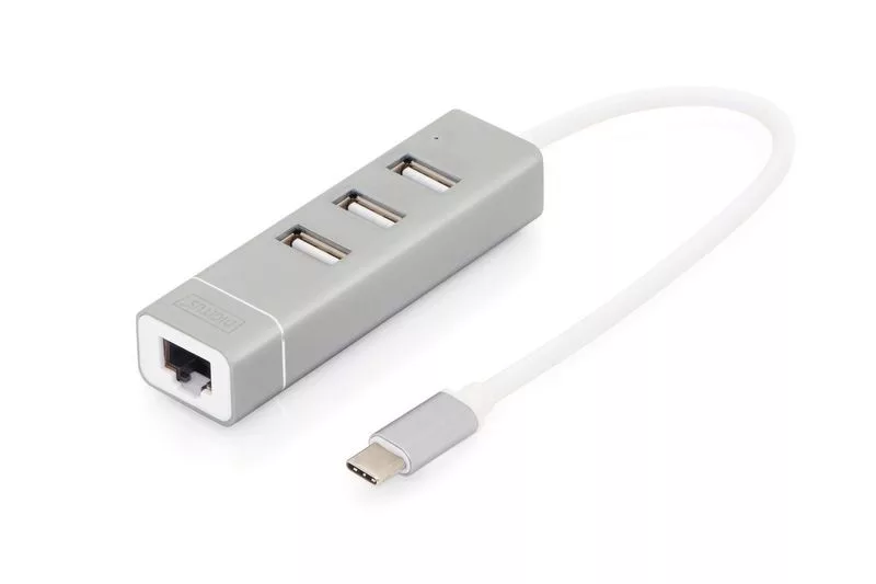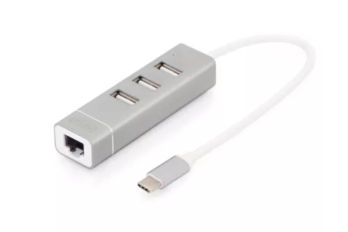 Digitus DA-70253 USB Type-C 3-Port Hub + Fast Ethernet LAN Adapter