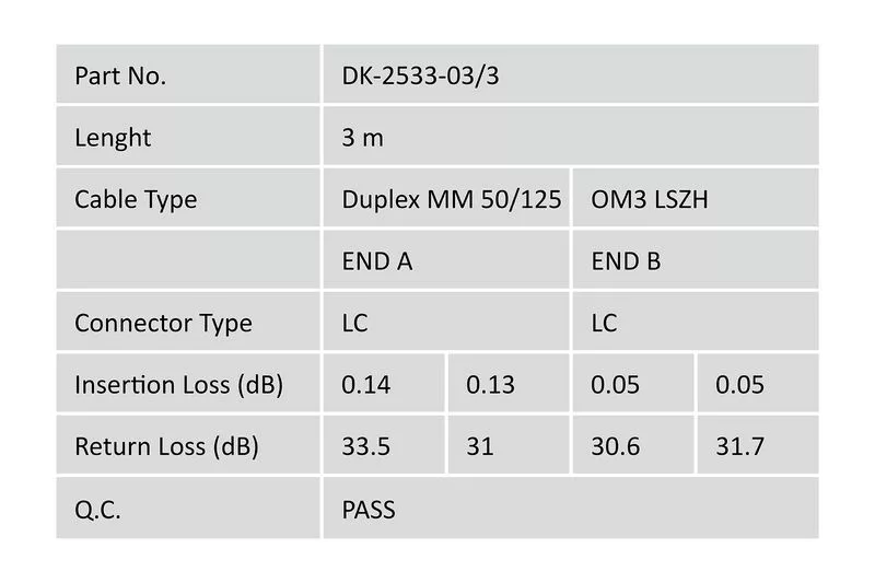Fibre type: Multi mode 50/125