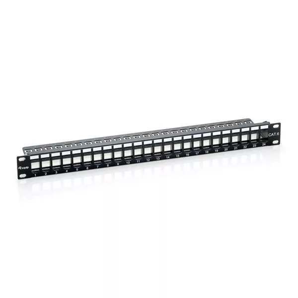 The equip® Patch Panel is a 19" 1U network distribution unit integrating cable management system for better routing and strain relief requirements, suitable for both LSA and 110 standards. Featuring 24 ports, this patch panel is recommended to connect with equip® unshielded keystone jacks and cables. Moreover, each port is marked with port number for recognition.