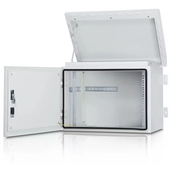 • Duplán zárható elülső ajtó (kulcs & lakat). • Teljes védelem por és víz behatolása ellen IP66-os minősítéssel. • Nyitható felső szerkezet, amely külső hozzáférést biztosít a ventilátormodulhoz. • Kábeles bevezetőnyílások az alsó részen találhatók. • Porszűrős levegő bevezető lamellák. • Por szűrős levegőkivezető rész, ventilátorral is ellátható (opcionális). • Szellőztetést 1 vagy 2 ventilátoros kiegészítő egységek biztosíthatnak. • 50W vagy 100W teljesítményű fűtőmodullal bővíthető (opcionális). • 7U/ 9U/ 12U/ 16U/ 20U változatokban elérhető. • Szerelési profilok U-jelöléssel, amelyek megkönnyítik a tervezési és szerelési folyamatot. • Falra szerelhető verzió. • Rendkívül hatékony cirkónium + cink bevonat korrózió ellen. • Kopásálló, nagy szilárdságú, elektrosztatikus RAL 7035 szürke színnel festve. • Megfelel az RoHS, CE, EN 61587-1 szabványoknak és további, gyári tesztelési eljárások is elvégezve.