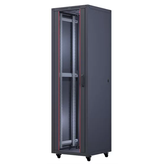 - A Betaline szekrények négy oldalról nyithatóak, zárhatóak és könnyen eltávolítható burkolatokkal rendelkeznek. - A hátsó és oldalsó burkolatok DKP lemezből készülnek, az elülső oldal pedig 4 mm vastag, ütésálló, edzett és füstszínű üvegből, amelyet fémkeret támaszt meg. - A keret és a sarokprofilok csavaros szerkezetűek a belső oldalon, ami nagy szilárdságot biztosít. - A szellőzés 2, 4 vagy 6 ventilátoros hűtőegységekkel biztosítható. - Elérhető magasságok: 12U, 16U, 20U, 26U, 32U, 36U, 42U és 47U. - A szekrényben négy darab 19” szerelőprofil található, amelyek mélysége igény szerint állítható. - A szerelőprofilok U jelölésekkel rendelkeznek, amelyek megkönnyítik a szerelést. - A szekrény alján csúsztatható, porvédett kefés kábelbevezetés található. Ezek két helyen érhetők el, alulról felfelé. - Ütésálló, nagy szilárdságú, elektrosztatikus RAL 9005 fekete festékkel bevonva. - Minden szükséges vizsgálati teszt elvégezve, megfelel a RoHS, CE, EN 61587-1 szabványoknak..