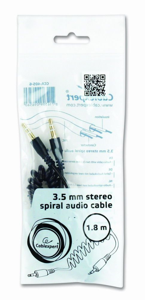 Gembird CCA-405-6 3.5mm stereo spiral audio cable 1,8m Black
