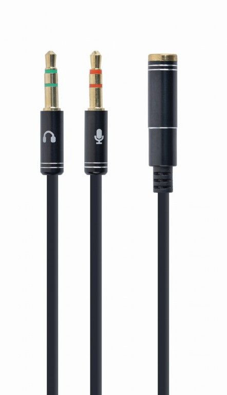 Gembird CCA-418M 3.5 mm 4-pin socket to 2 x 3.5 mm stereo plug adapter cable 0,2 m Black