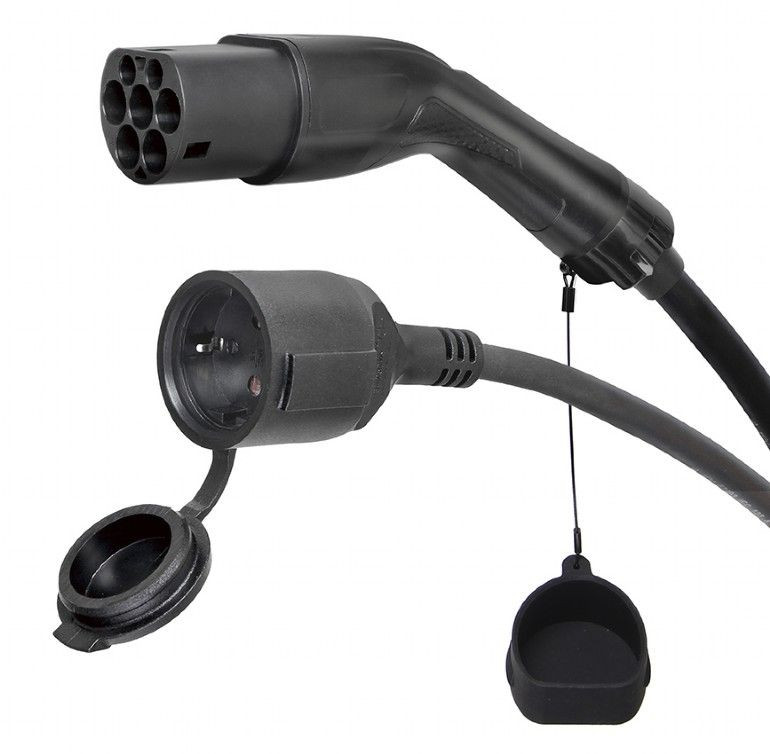 Elektromos autó töltőkábel, Schuko, Type2, Male/Female, 0,5m, Black