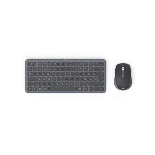 • Irodai billentyűzetet és optikai 6 gombos egeret tartalmazó készlet számítógépek, okostelefonok és táblagépek vezeték nélküli vezérléséhez Bluetooth-on vagy rádió frekvencián keresztül, az USB-A vevőegységgel kombinálva