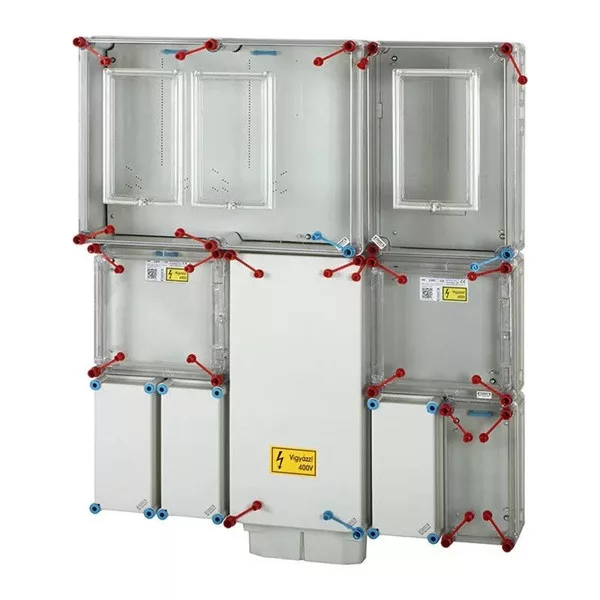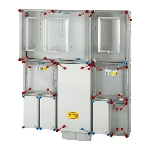 • 1 és 3 fázisú három mérőhelyes fogyasztásmérő szekrény minden napszaki (80 A), vezérelt (32 A) és H-tarifa (63 A) méréshez