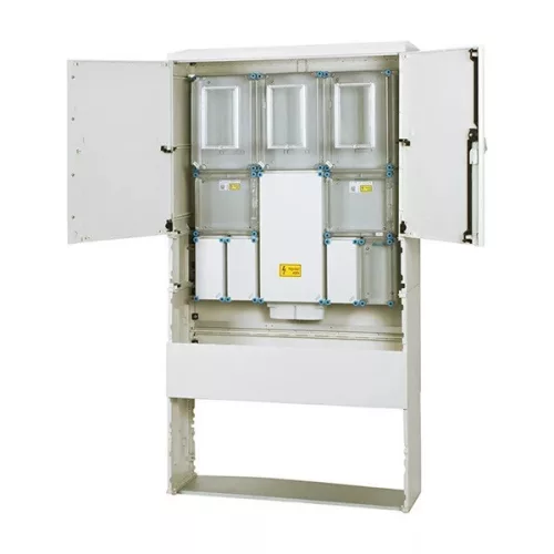 • 1 és 3 fázisú három mérőhelyes fogyasztásmérő szekrény minden napszaki (80 A), vezérelt (32 A) és H-tarifa (63 A) méréshez