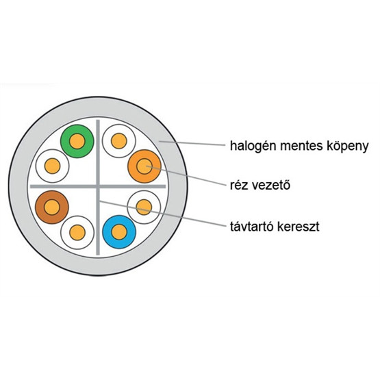 Giga+ fali kábel UTP (U/UTP) 4x2xAWG23 Cat.6, LSOH halogénmentes Euroclass Dca, 305 m-es dob