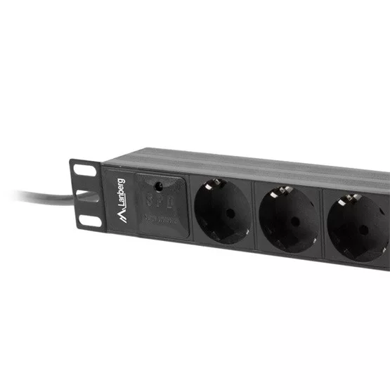 Lanberg 10" PDU/elosztósor 1U 10A 2m 3x Schuko aljzat fekete C14