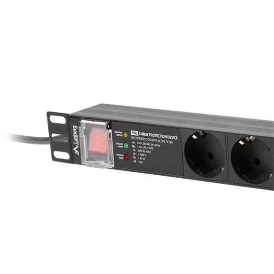Lanberg 19" PDU/elosztósor PRO 1U 16A 2m 7x Schuko aljzat SPD-3MP, fekete