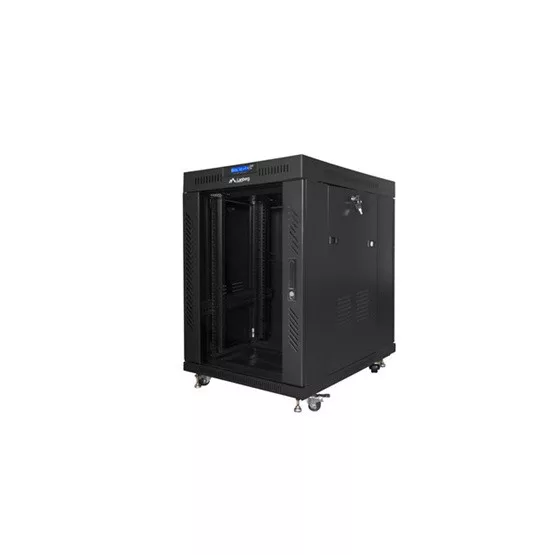 Lanberg 19" szabadon álló rack szekrény 15U/600X800 üvegajtó, lapraszerelt, LCD kijelző, fekete V2