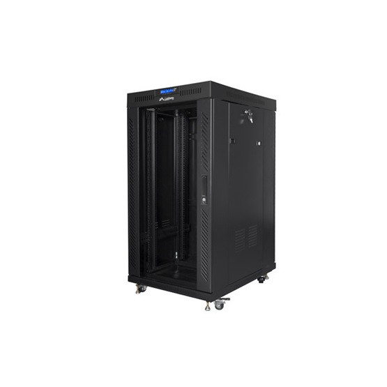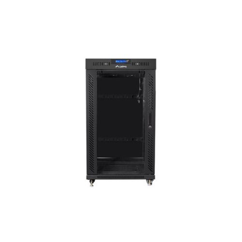 19" szabadon álló rack szekrény 22U/800X1000 üvegajtó, lapraszerelt, LCD kijelző, fekete V2
