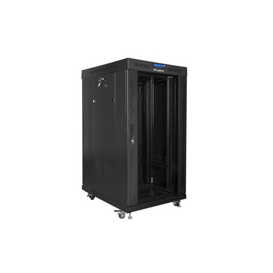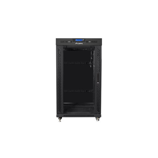 Lanberg 19" szabadon álló rack szekrény 22U/800X1000 üvegajtó, lapraszerelt, LCD kijelző, fekete V2
