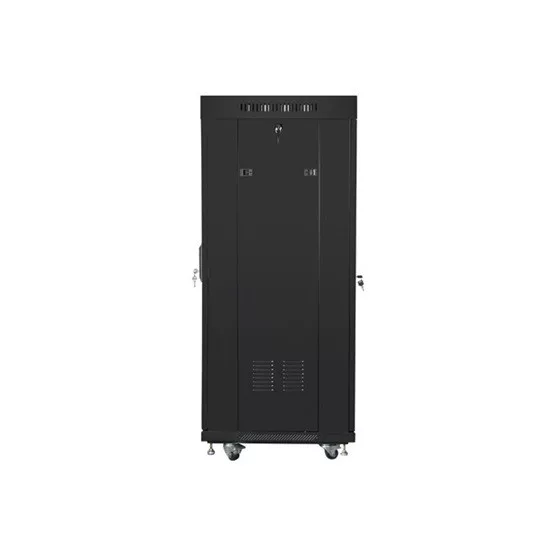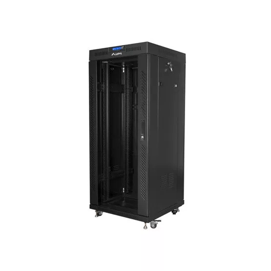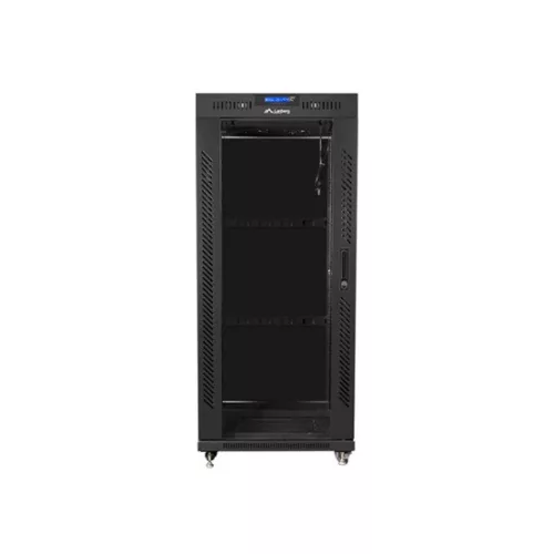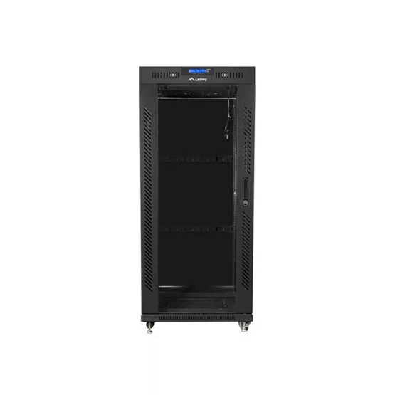 Lanberg 19" szabadon álló rack szekrény 27U/600X600 üvegajtó, lapraszerelt, LCD kijelző, fekete V2