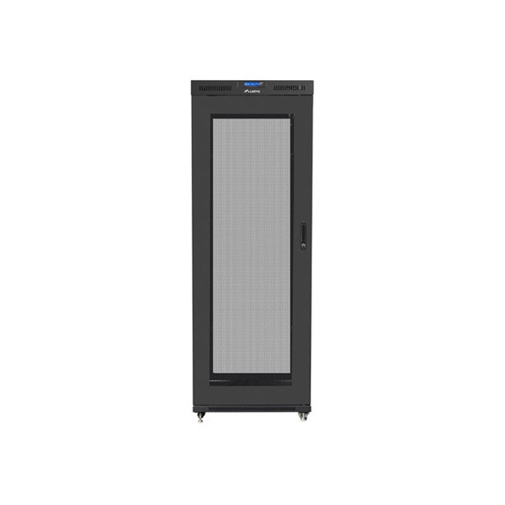Lanberg 19" szabadon álló rack szekrény 27U/800X1000 perforált ajtó, lapraszerelt, LCD kijelző, fekete V2