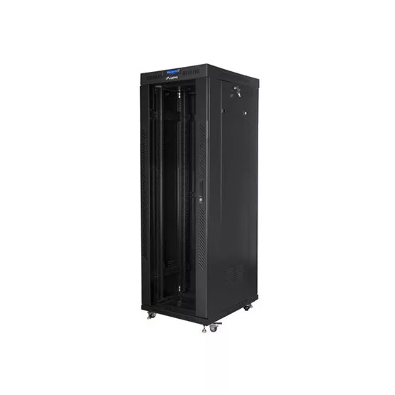 Lanberg 19" szabadon álló rack szekrény 37U/800X1000 üvegajtó, lapraszerelt, LCD kijelző, fekete V2