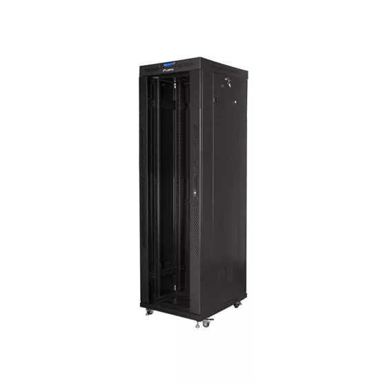 Lanberg 19" szabadon álló rack szekrény 42U/600X800 üvegajtó, lapraszerelt, LCD kijelző, fekete V2