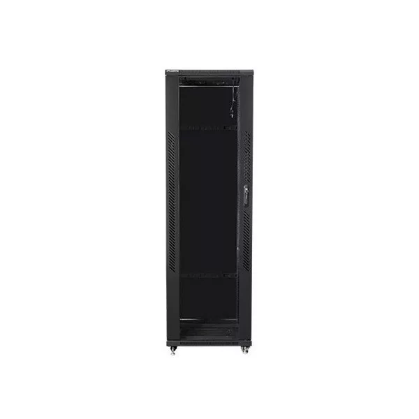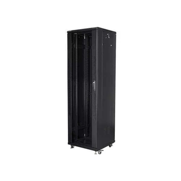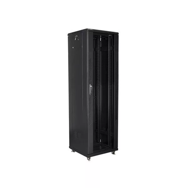 Lanberg FF01-6642-12B 19" 42U SZÉL:600mm MÉLY:600mm MAG:2047mm lapraszerelt üvegajtós fekete rack szekrény