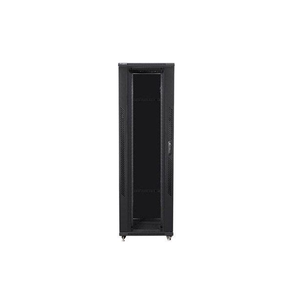 Lanberg FF01-8242-12B 19" 42U SZÉL:800mm MÉLY:1200mm MAG:2047mm lapraszerelt üvegajtós fekete rack szekrény