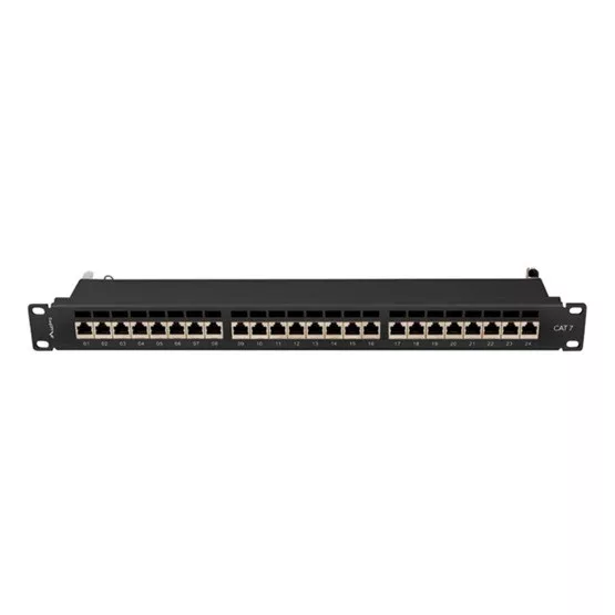 Patch panel 24 port 1U 19" CAT.7 FTP, fekete