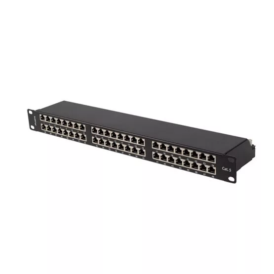 Patch panel 48 port 1U 19" CAT.5e FTP, árnyékolt, fekete