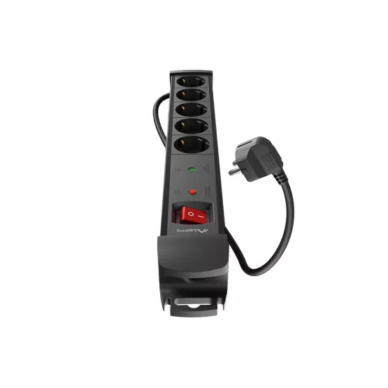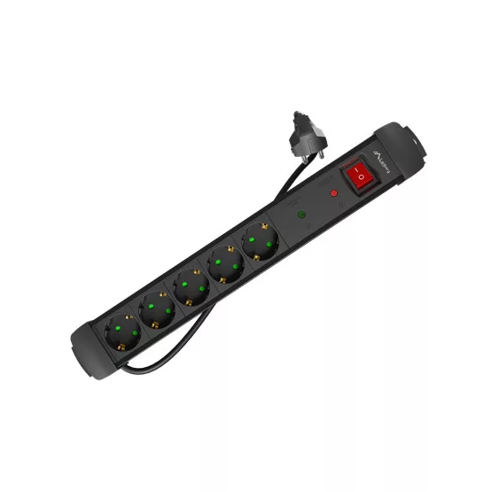 Túlfeszültség védő elosztó, 2500 W, 5x Schuko aljzat, 1.5 m, fekete