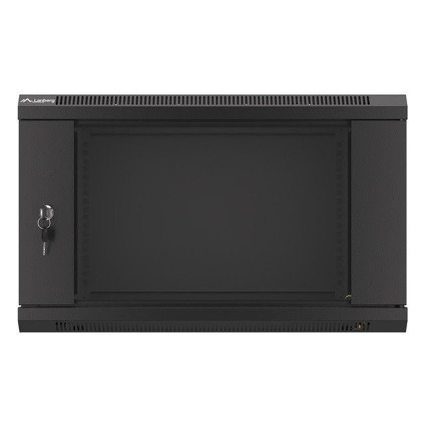 Lanberg WF01-6406-10B 19" 6U SZÉL:600mm MÉLY:450mm MAG:379mm lapraszerelt üvegajtós fekete fali rack szekrény