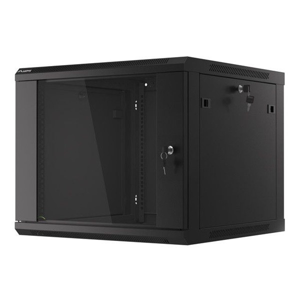 Lanberg WF01-6609-10B 19" 9U SZÉL:600mm MÉLY:600mm MAG:512mm lapraszerelt üvegajtós fekete fali rack szekrény
