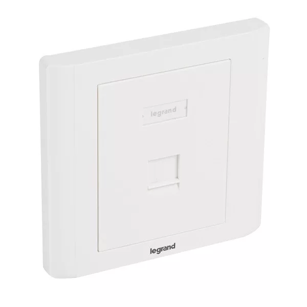 Legrand süllyesztett szerelvény - 1xRJ45 keystone port fogadására egyenes fehérburkolattal és kerettel címketartóval