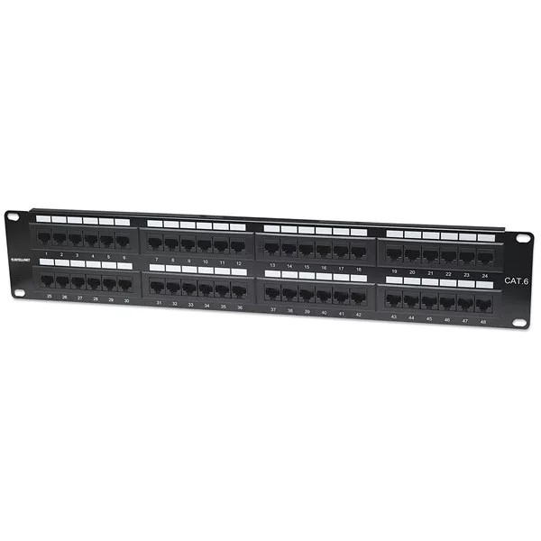 Manhattan Patch panel - CAT6 UTP patch panel, 48 portos, 2U, Fekete