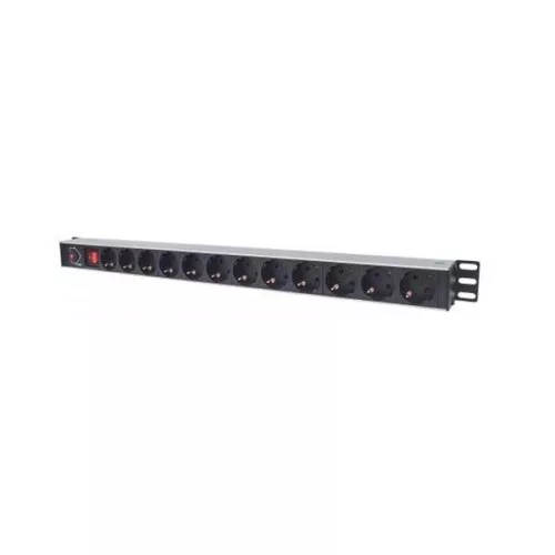 Manhattan elosztó - Vertikális Rackmount elosztó, 12 aljzat, 1.6m, túláram elleni védelem, ki-be kapcsológomb