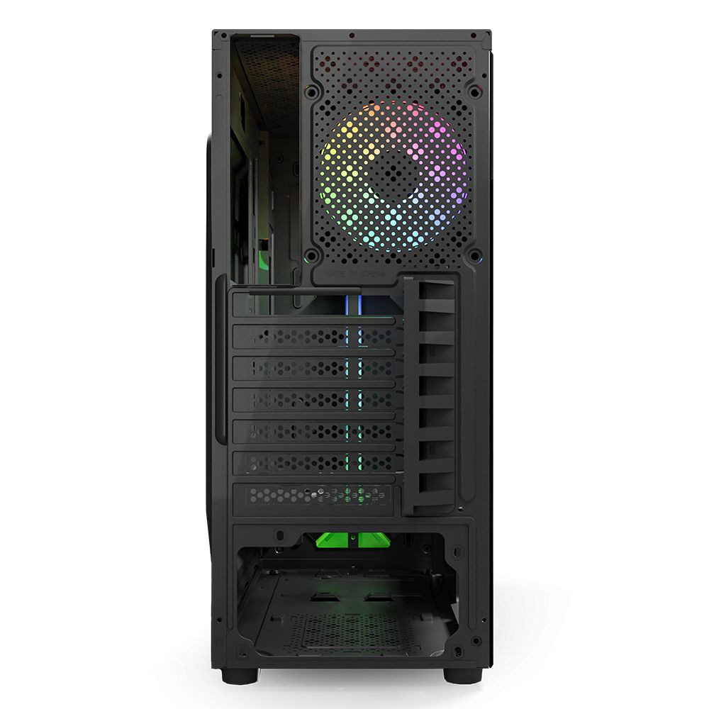 ATX, Black, 1x3,5", 1x2,5", 2xUSB2.0, 1xUSB3.0, Audio, Táp nélkül, 350x180x410mm, Ventilátor:1x12cm, Window, RGB, Gamer
