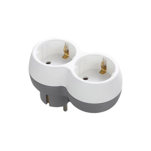 ORNO, OR-AE-13238(GS), 2x2P+E 2-es elosztó, 230V, 16A, IP20, 55,4X99,4X58,5mm, Fehér/Szürke