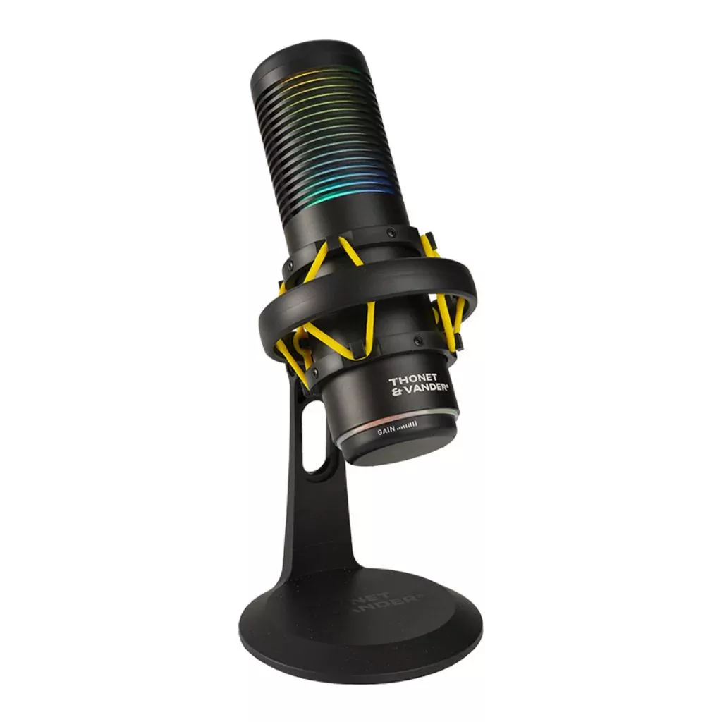 Bemutatjuk a VX320 kondenzátor mikrofont, a Thonet & Vander VX Gamer sorozatának legújabb tagját. A igényes streamerek és játékosok számára tervezett új mikrofon új értelmet ad a közvetítési élménynek. Fejezd ki magad egy vizuálisan lenyűgöző berendezéssel, amely testreszabható RGB-világítással rendelkezik, hogy illeszkedjen a streamelő szobádhoz. Ez a várva várt újdonság számos kifogástalan tervezési funkcióval büszkélkedhet, többek között tap-to-mute érzékelővel, háttérzaj-szűrési technológiával, plug-and-play rendszerrel, amelyhez nincs szükség audio interfészre, és még sok mással.