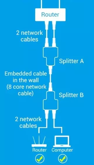 UTP/FTP CAT5 Y elosztó, LAN-LAN, RJ45 "Splitter"