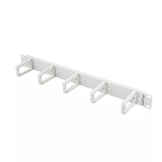 Lanberg 19" 1U gyűrűs kábelrendező panel, 5 műanyag gyűrű, szürke