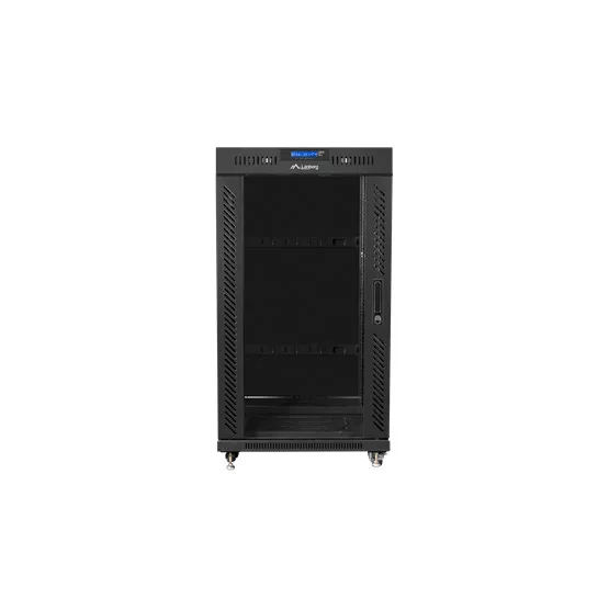 19" szabadon álló rack szekrény 22U/600X600 üvegajtó, lapraszerelt, LCD kijelző, fekete V2
