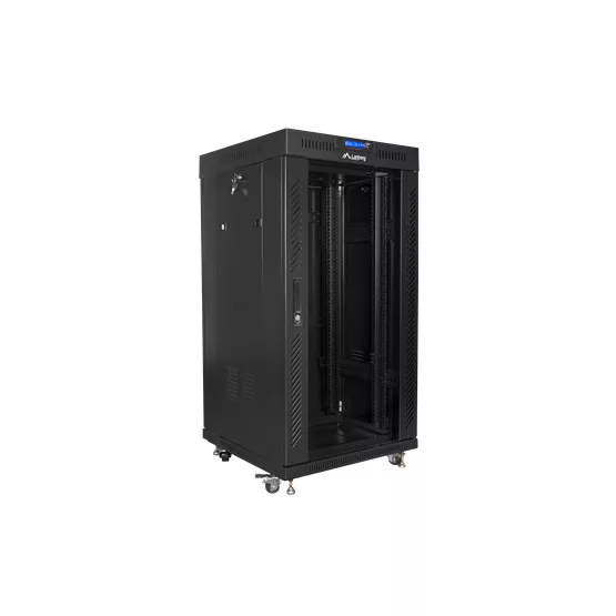 Lanberg 19" szabadon álló rack szekrény 22U/600X600 üvegajtó, lapraszerelt, LCD kijelző, fekete V2
