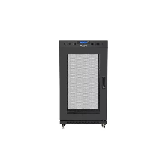 Lanberg 19" szabadon álló rack szekrény 22U/600X600 perforált ajtó, lapraszerelt, LCD kijelző, fekete V2