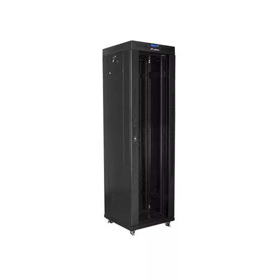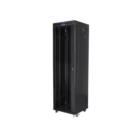 Lanberg 19" szabadon álló rack szekrény 42U/600X600 üvegajtó, lapraszerelt, LCD kijelző, fekete V2