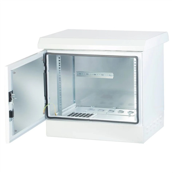 • Duplán zárható elülső ajtó (kulcs & lakat). • Teljes védelem por és víz behatolása ellen IP66-os minősítéssel. • Nyitható felső szerkezet, amely külső hozzáférést biztosít a ventilátormodulhoz. • Standard 100 mm-es lábazat • Kábeles bevezetőnyílások az alsó részen találhatók. • Porszűrős levegő bevezető lamellák. • Por szűrős levegőkivezető rész, ventilátorral is ellátható (opcionális). • Szellőztetést 1 vagy 2 ventilátoros kiegészítő egységek biztosíthatnak. • 50W vagy 100W teljesítményű fűtőmodullal bővíthető (opcionális). • Gyári belső hőszigetelés. • 7U/9U/12U/16U/20U változatokban elérhető. • Szerelési profilok U-jelöléssel, amelyek megkönnyítik a tervezési és szerelési folyamatot. • A talajra szerelhető. • Rendkívül hatékony cirkónium + cink bevonat korrózió ellen. • Kopásálló, nagy szilárdságú, elektrosztatikus RAL 7035 szürke színnel festve. • Megfelel az RoHS, CE, EN 61587-1 szabványoknak és további, gyári tesztelési eljárások is elvégezve.