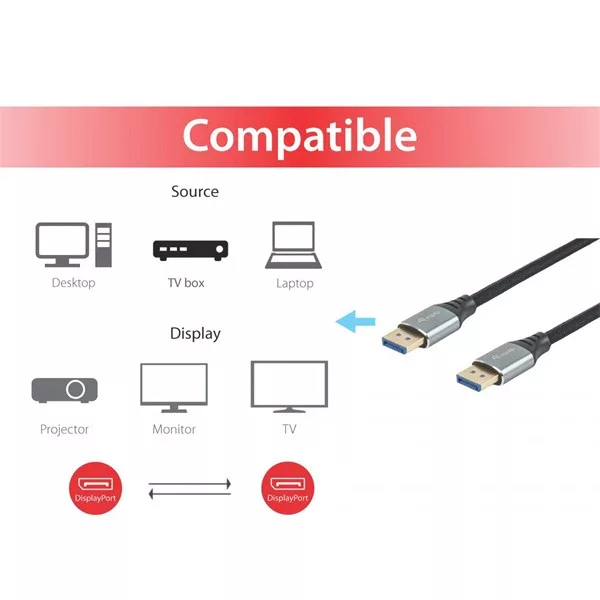 • DisplayPort 2.1 Male to Male