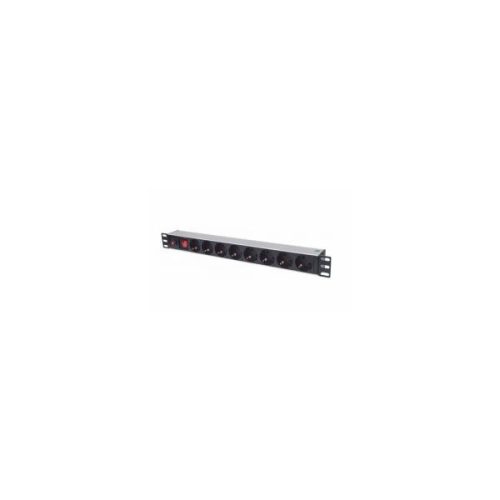Manhattan elosztó - 19" 1U Rackmount elosztó, 8 aljzat, LED fény, 3m, túlfeszültség védelem, ki-be kapcsológomb